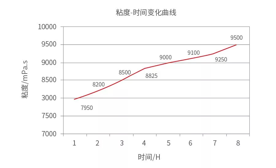 下圖為100℃下粘度隨時(shí)間變化曲線, (25℃&60%RH )