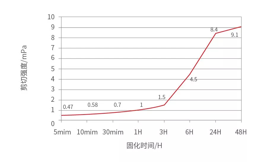 下圖為固化強(qiáng)度隨時(shí)間變化曲線(材料:PC/PC 條件:25℃@60%RH)