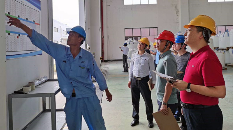 實(shí)踐是改變心智的唯一途徑,會(huì)場(chǎng)上的員工表現(xiàn)出素養(yǎng)的成果勢(shì)必要以現(xiàn)場(chǎng)改善作為支撐。評(píng)審委員會(huì)成員李鐵山、馮延昭、廖偉、林一流,帶領(lǐng)全體成員步入車(chē)間一線,從現(xiàn)場(chǎng)“物”、人員“素養(yǎng)”、安全三個(gè)方面共17個(gè)考核指標(biāo),分別對(duì)半成品庫(kù)、PUR、聚合(PA)、聚合(PES)、冷凍粉碎、篩分包裝6個(gè)樣板區(qū)車(chē)間進(jìn)行全面、細(xì)致的評(píng)審、記錄,并就下一步改善工作做出明確指示。經(jīng)過(guò)2小時(shí)的現(xiàn)場(chǎng)審核,各車(chē)間為期2個(gè)月“鏖戰(zhàn)”成果完美呈現(xiàn)——所有車(chē)間評(píng)分均超過(guò)80分卓越標(biāo)準(zhǔn),前兩名更是得到超過(guò)90分的優(yōu)異成績(jī)!其中,尤以粉體車(chē)間的變化讓人“驚訝”,雖然評(píng)分位列第三、第四,但是基于前后的現(xiàn)場(chǎng)對(duì)比及人員意識(shí)轉(zhuǎn)變之大,讓評(píng)審領(lǐng)導(dǎo)給予了“翻天覆地”的極高評(píng)價(jià)!
