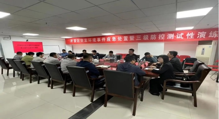 場(chǎng)景三:桌面推演、信息報(bào)送、總結(jié)提升演練。公司應(yīng)急搶險(xiǎn)組和海安市生態(tài)環(huán)境局共同進(jìn)行桌面推演小結(jié)??偨?jīng)理陳永東就企業(yè)如何第一時(shí)間開展應(yīng)急救援、污染物控制及應(yīng)當(dāng)履行的環(huán)境應(yīng)急管理義務(wù)進(jìn)行了重申;就應(yīng)急的專業(yè)性、規(guī)范性,監(jiān)測(cè)的及時(shí)性、可行性、代表性進(jìn)行了重述;